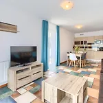Nestled in the Dzielnica Uzdrowiskowa district, the 7-room Apartamenty Promenada - Aquarius features Wi-Fi and public parking nearby. Stadium Kolobrzeg is nearly a 10-minute ride from the apartment while MOSiR Aquapark Milenium is 10 minutes away by car.